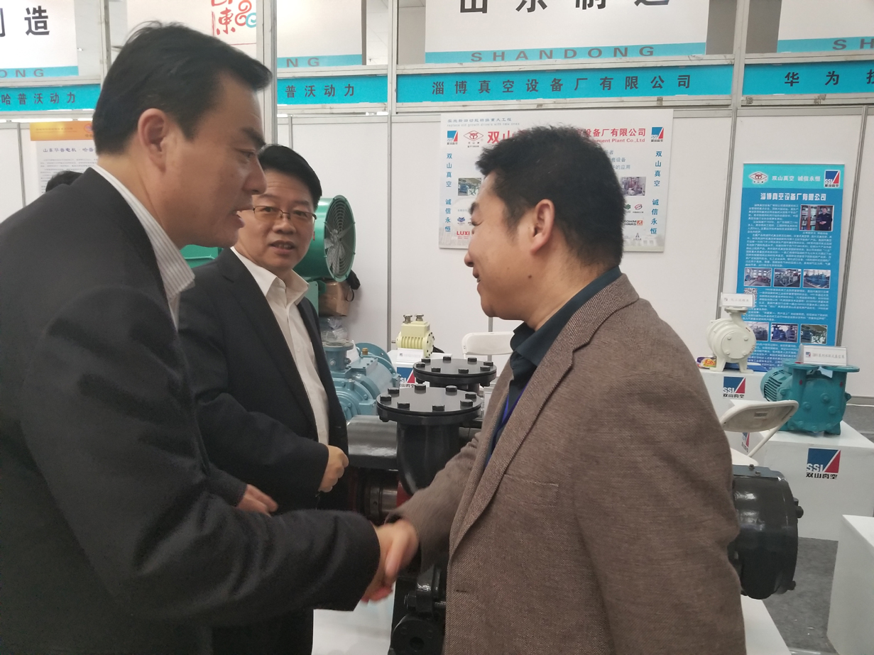 公司參加本次博覽會是隨山東省經(jīng)濟(jì)和信息化委員會、山東省裝備制造業(yè)協(xié)會組團(tuán)參加。省經(jīng)信委二級巡視員張中軍和省裝備制造業(yè)協(xié)會秘書長陶俊義來到公司展臺前仔細(xì)參觀了我公司展品,詢問了公司發(fā)展的有關(guān)情況。張主任勉勵我公司要充分發(fā)揮好在真空行業(yè)的領(lǐng)先地位,把產(chǎn)品質(zhì)量做好,把產(chǎn)品服務(wù)做好,真正為實(shí)施新舊動能轉(zhuǎn)換,全力打造山東新工業(yè)做出自己的貢獻(xiàn)。